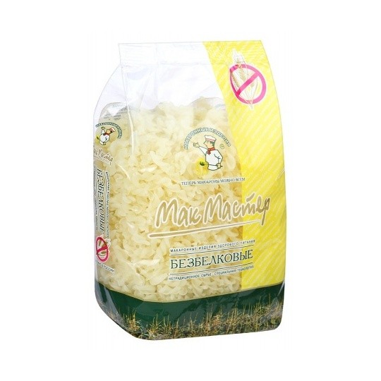 Безбелковая спираль ДОМАШНЯЯМакМастер производится из безбелкового сырья - крахмала - с добавлением молотой куркумы. Ведется жесткий контроль содержания белка в сырье и готовой продукции ГОСТовскими методами высококвалифицированными специалистами. Содержание белка в макаронах не превышает 0,5г на 100г.