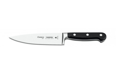 Лезвие из качественной нержавеющей стали высочайшего качества особой закалки глубоким охлаждением обеспечивает ножу отличную износостойкость. Используется хромомолибденовая высокоуглеродистая сталь 1.4110 KRUPP. В этой стали больше углерода и обеспечивающего коррозионную стойкость хрома, чем в AISI 420, более того, добавляется молибден. Метод производства ножей серии Century - ковка в штампах. Твердость ножей серии Century порядка 55/58 HRC. Сертификат NSF (National Sanitation Foundation), организации признанной во всём мире, которая проводит консультации, проверки и обучение, по безопасности здоровья пищи, воды, воздуха и окружающей среды. Рукоятки серии ножей Century выполнены из поликарбоната со стекловолокном, который по сравнение с широко используемым бакелитом, более долговечен, надежен, плюс выдерживает более значительные температуры, 200 градусов, а не 170 по Цельсию. Технология Century – это линейка изделий, которые прослужит долгие годы и даже перейдет по наследству вашим детям. Ввиду особой твердости стали (а значит и хрупкости) избегайте ситуаций, при которых нож падает на твердые покрытия, он может расколоться. Но не подумайте, что он хрупкий как керамический нож. Чтобы изделие раскололось должна быть или значительная высота или сила броска. Можно мыть в посудомоечной машине. Долго сохраняет эстетичный внешний вид.