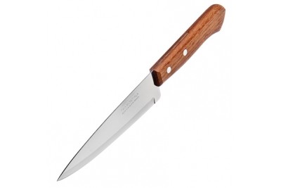 Серия ножей Universal - классические кухонные ножи. Хорошее качество материалов и тонкое лезвие. Прекрасное соотношение цены и качества. Используется листовая нержавеющая сталь AISI 420. Сталь обладает хорошей пластичностью, высокой ударной вязкостью, хорошей коррозионной стойкостью и жаростойкостью; наибольшая коррозионная стойкость достигается после термической обработки и полировки. Рукоятка выполнена из натурального дерева и является очень прочной и удобной в использовании Можно мыть в посудомоечной машине. Долго сохраняет богатый и эстетичный внешний вид. Марка стали, серия и размеры указаны на фото. Благодаря уникальному методу закалки в несколько этапов сталь приобретает особую пластичность, коррозийно и жаростойкость, сохраняя твердость порядка 53 единиц по шкале Роквелла. Ножи Tramontina обеспечивают более долгий срок службы по сравнению с ножами из аналогичной стали других производителей. Мы предлагаем покупателям только оригинальную продукцию, произведенную в Бразилии.